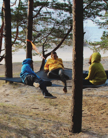 Tirando partido da gravidade, esta mesa encontra o seu sustento nas árvores, oferecendo a possibilidade de se adaptar a diferentes espessuras de tronco e regular a ...